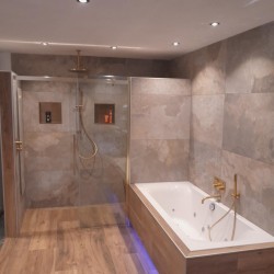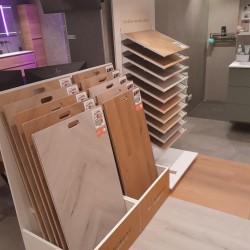 Wilt u een nieuwe vloer? Ook kunt u een prachtige bijpassende vloer uitzoeken. Behalve vloertegels zijn we ook dealer van PVC-clickvloeren van het merk Bobeau. Bobeau bestaat voor uit 70% uit kalksteen en 30% uit pvc. Is geschikt voor vloerverwarming door een geïntegreerde ondervloer en met geluidsreductie tot wel 21DB. Een ander voordeel is dat u het eventueel zelf kan leggen d.m.v. het clicksysteem.